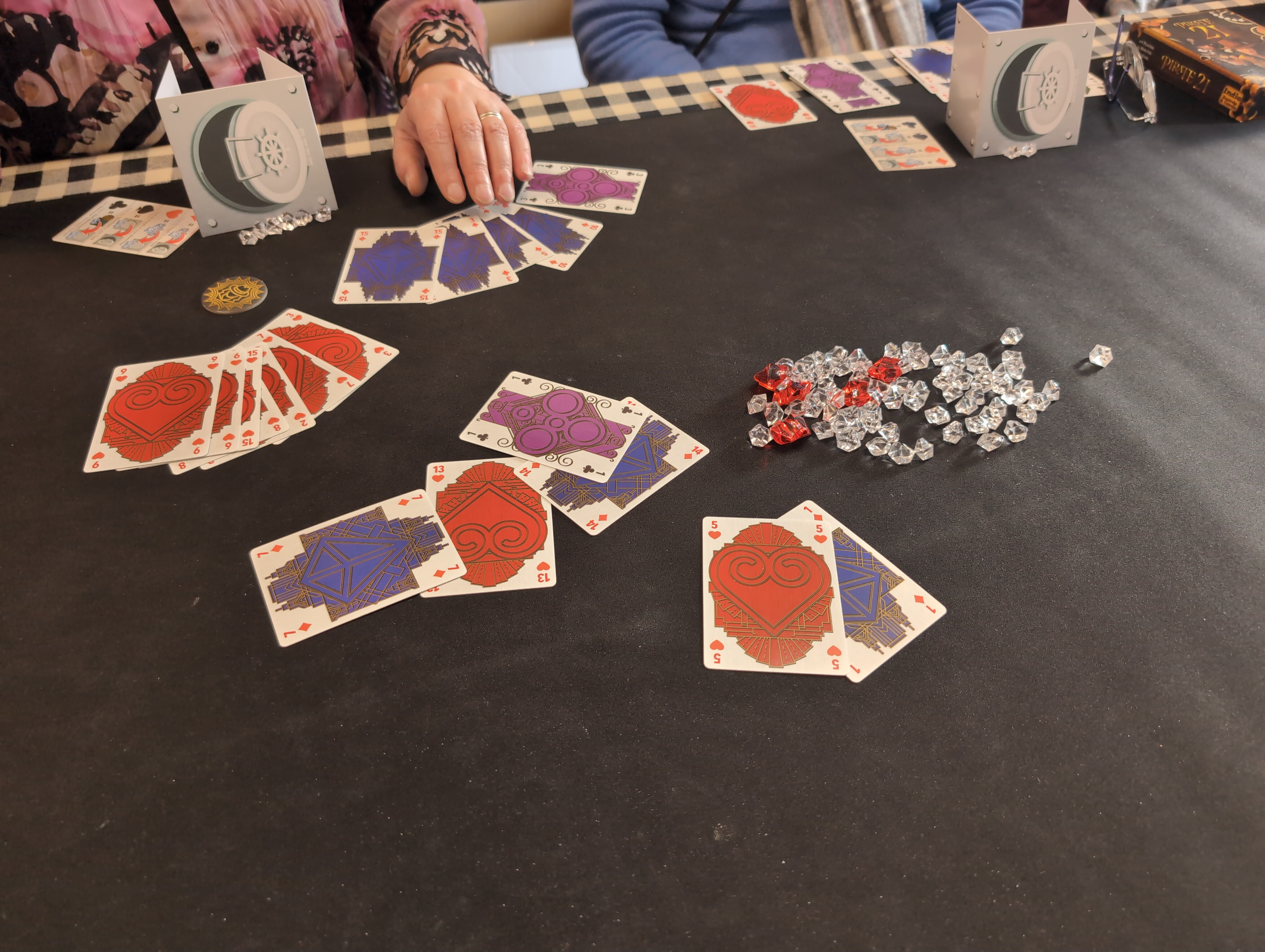 players (including a team-up), all cards are in play, so one is less
