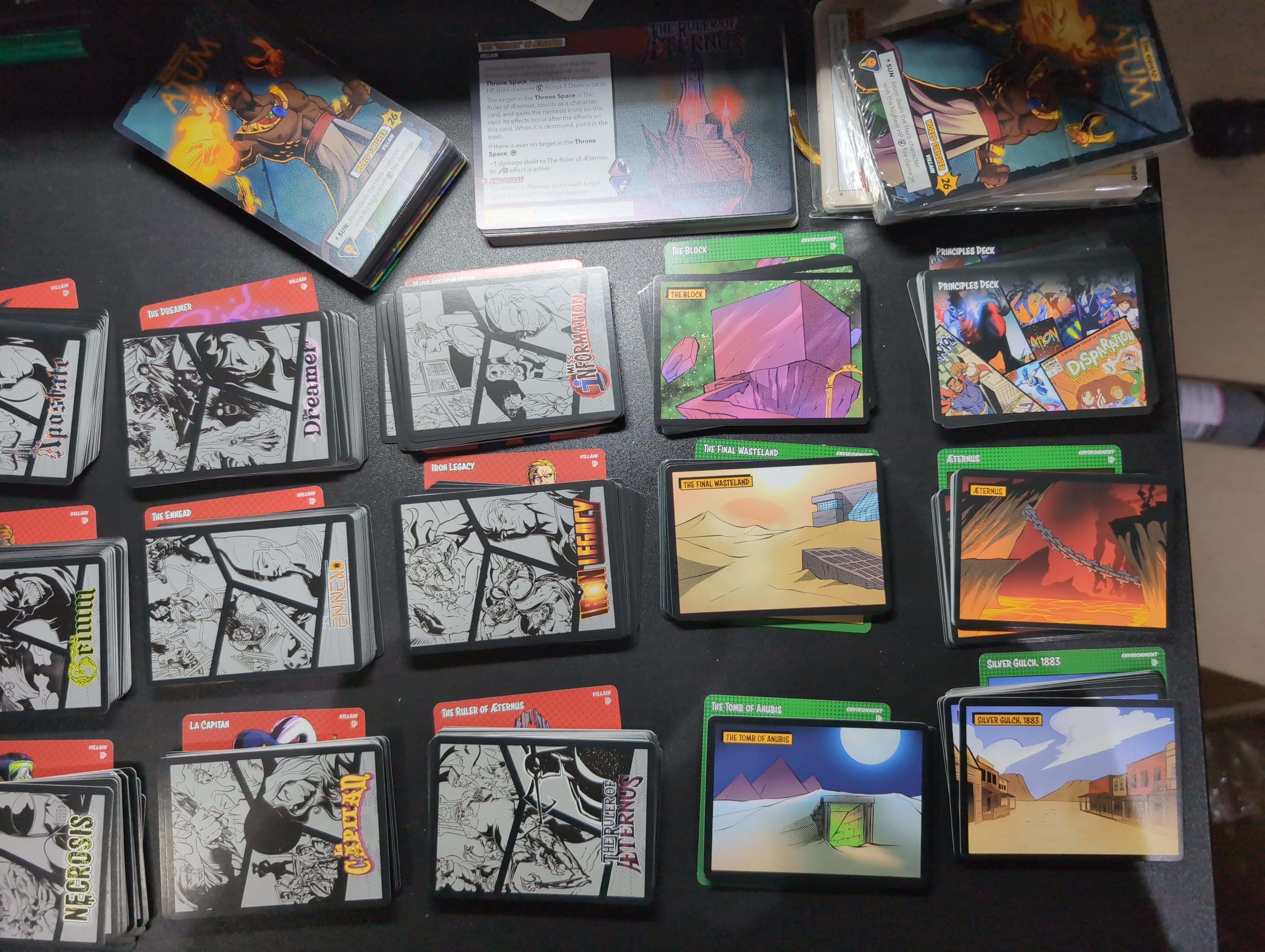 below, villain and location decks; hero, villain and event cards, and