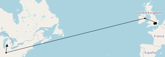 Measuring the straight-line hops, that's about 6900km over a span of