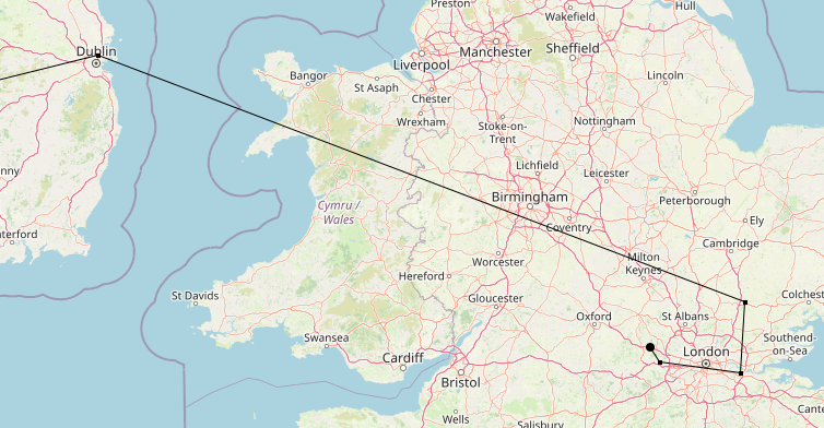 Santry (Dublin), to Stansted, to Dartford, to Slough and then to me.